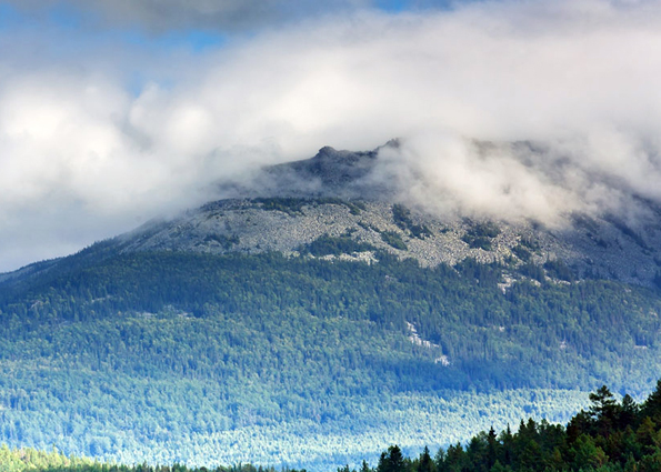 Гора Большой Иремель. Жемчужина края, гора представляет на Южном Урале наиболее высоко поднятый горный массив (1582 м), уступая в этом отношении лишь Яман-Тау (1640м). Большой Иремель венчается величественной платообразной вершиной, называемой Кабан.